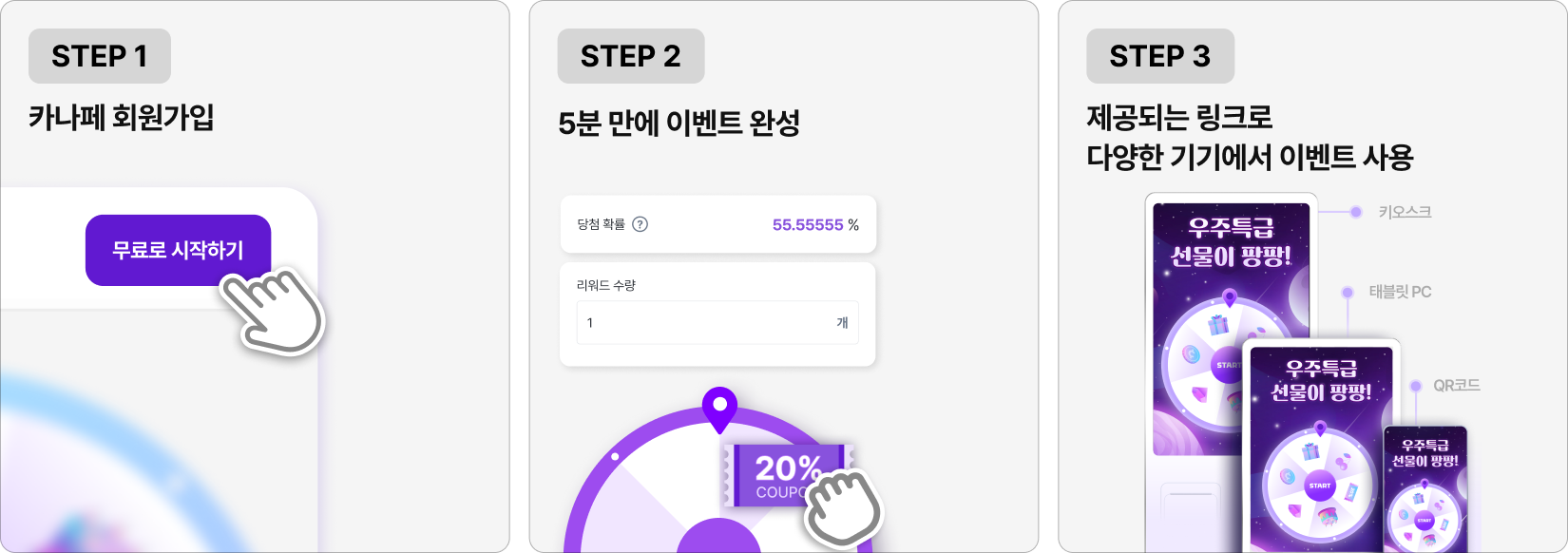 단 10분이면 서비스 이용부터 이벤트 제작 완료까지 가능합니다.